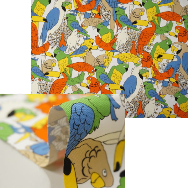 コットンオックス 生地 カラフルバード 綿100% 布 手芸 通園 通学 入園 入学 インコ オウム 鳥