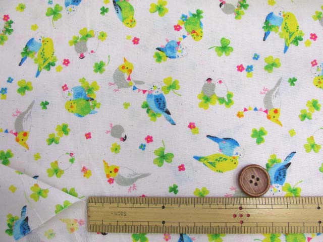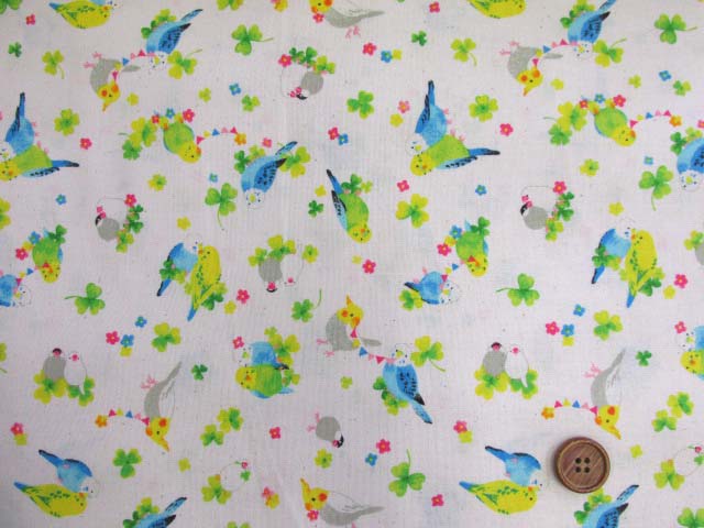 まったりインコ柄 シーチング生地 (ナチュラル)