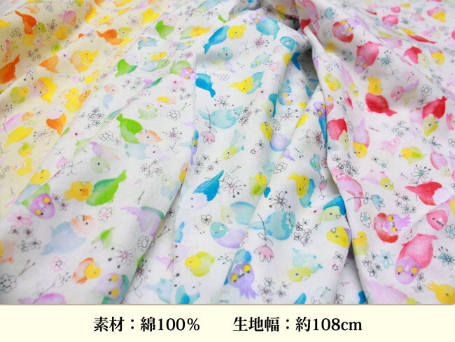 【メール便2mまで】水彩タッチ インコと友達ダブルガーゼ生地(1109) | ガーゼ ダブルガーゼ 布 生地 女の子 布地 綿 コットン生地 鳥柄 かわいい 手作り 布 赤ちゃん 綿100% ベビー Wガーゼ 二重ガーゼ 動物 ガーゼ生地 メール便OK